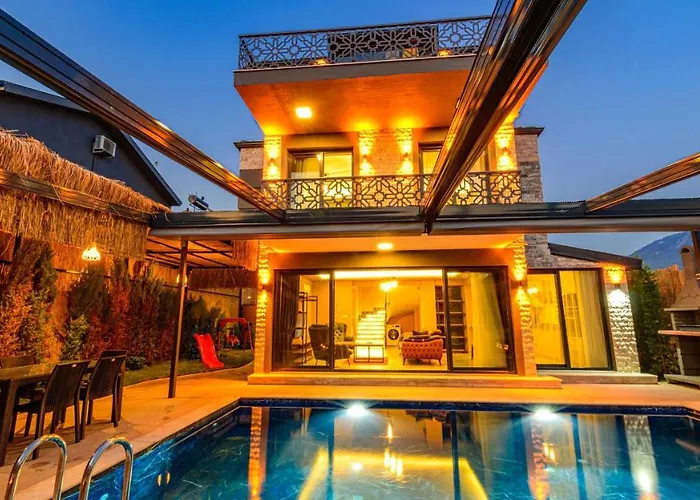 Deze 3-slaapkamer Söğüt 2 - 4 Bedroom with jacuzzi in Fethiye villa heeft een privézwembad voor de ontspanning van de gasten en ligt op 25 minuten wandelafstand van het Museum van Fethiye.